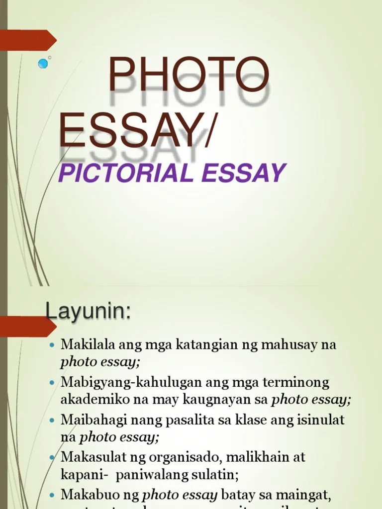 Ano ang kahulugan ng larawang sanaysay bilang isang akademikong sulatin. Ayon kay amit kalantri, isang nobelistang indian, "a photograph. Tiyakin ang iyong layunin sa pagsulat at gamitin ang iyong mga larawan sa pagkakamit ng iyong layunin. Gawain 1panuto may mga larawan akong inihanda nais kong suriin mo ang mga ito atsagutin ang mga brainly in. Kahulugan ng larawang sanaysay(pictorial essay) larawan at teksto ang pangkalahatang sangkap ng piktoryal essay.
